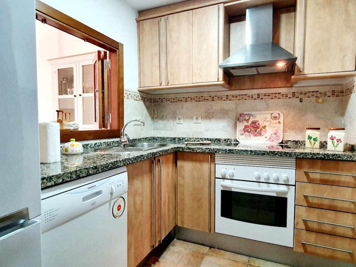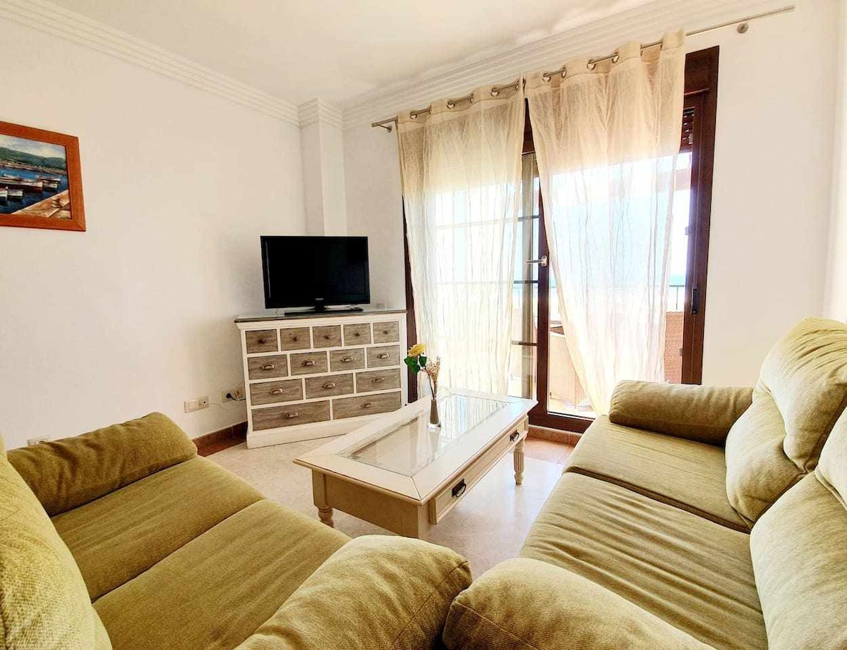 Dispone de dos dormitorios (uno principal con cama de matrimonio y otro con dos camas individuales), baño completo, amplio salón-comedor desde donde se accede a la terraza, cocina equipada con lavavajillas y lavadero contiguo (con lavadora). Magnífica terraza con vistas al mar.