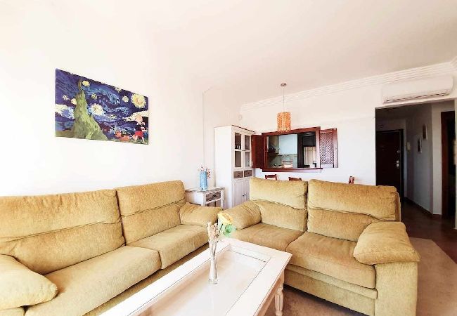 Apartamento en urbanización Las Dunas, situado en primera línea de playa y con terraza con vistas al mar.